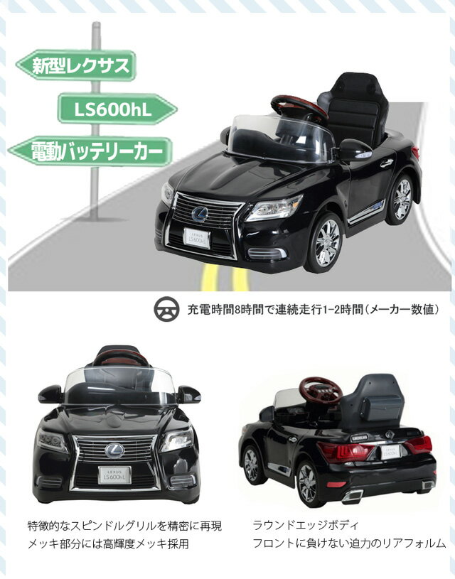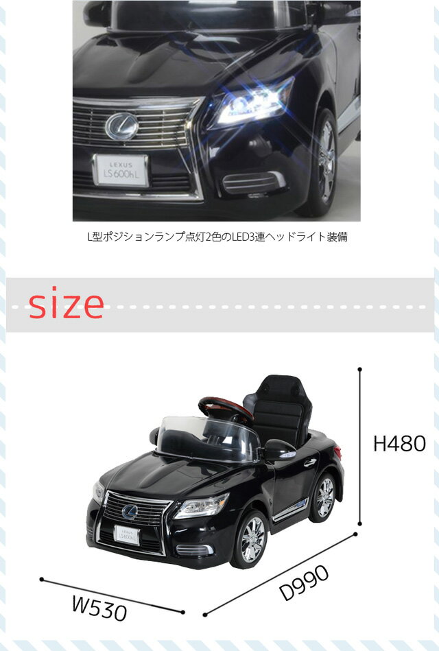 ミズタニ製品最高峰 スピンドルグリルのニューレクサスLS600hLの電動バッテリーカー メーカー ミズタニ 品名 新型レクサスLS600hL 電動バッテリーカー 対象年齢 3歳〜6歳 サイズ D990 x W530 x H480 重量 11.5kg 体重制限 30kg 材質 ABS・ポリプロピレン 特徴 動力用バッテリー、充電用アダプター付属しています。