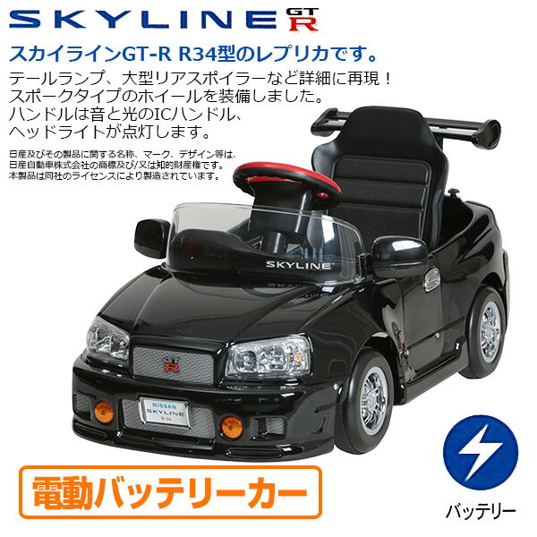 ミズタニ(A-KIDS) 電動乗用玩具 スカイライン GT-R R34型 (電動バッテリーカー)対象年齢2-5歳 R-34B ブラック 乗用玩具 車 自動車 こども 子供 くるま クリスマス 誕生日 電動カー 電動自動車 乗り物 のりもの 【送料無料】