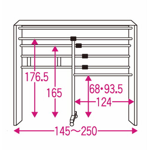>画像の説明はこちら<仕様・サイズ■色:(ア)ライトブラウン、(イ)ホワイト■幅145〜250奥行68高さ181cm・重量約53kg■本体…スチール(クロムメッキ・粉体塗装)、側板…化粧合板、天板…MDF、カーテン…ポリエステル100%■台湾製■組み立て時間の目安は大人2名で60分以内です。